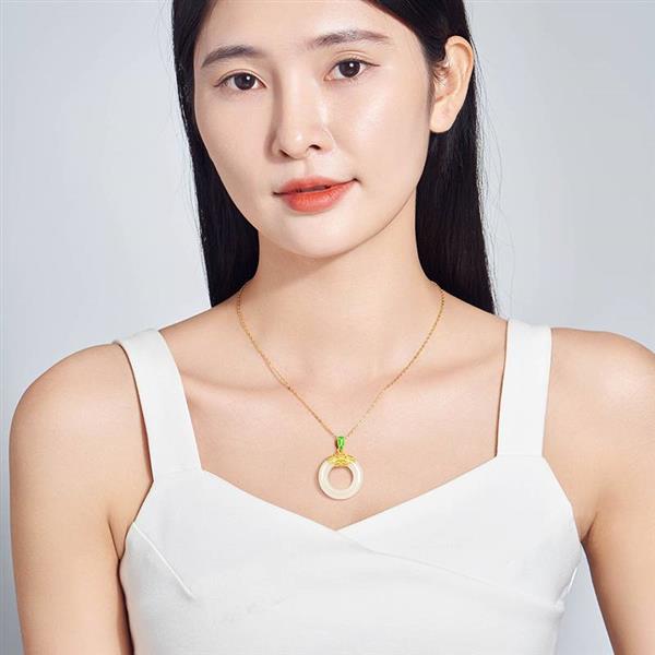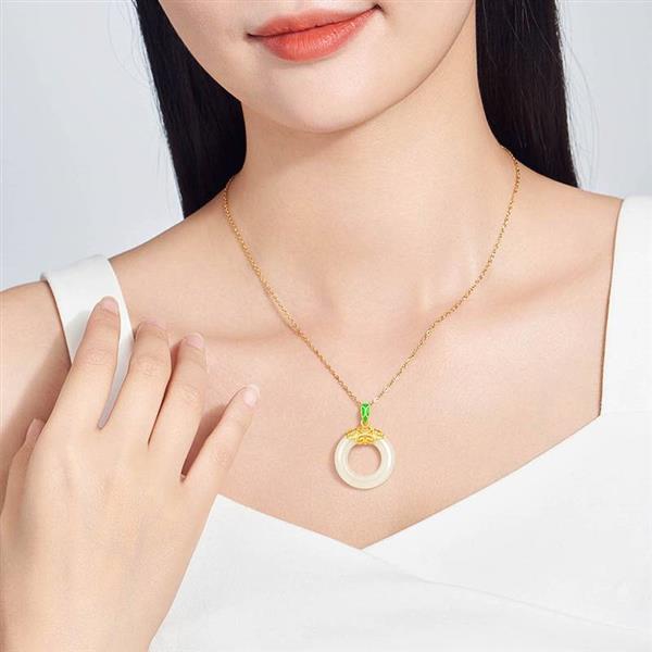 中国黄金S925银镶和田玉事事如意平安扣吊坠ZGHJ211438