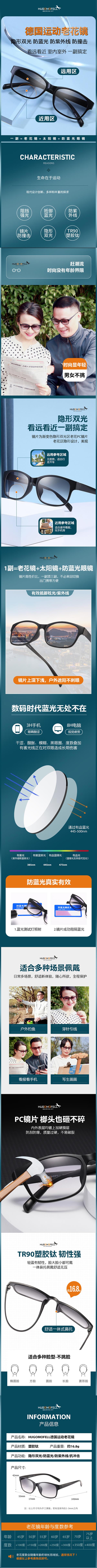 HUGOMFELL运动老花镜LH2206隐形双光 防蓝光 防紫外线 防撞击