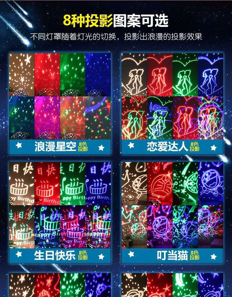 浪漫星空投影灯旋转男女孩朋友满天星安睡灯儿童奇特生日礼物