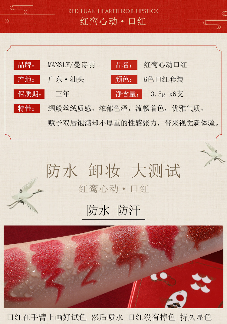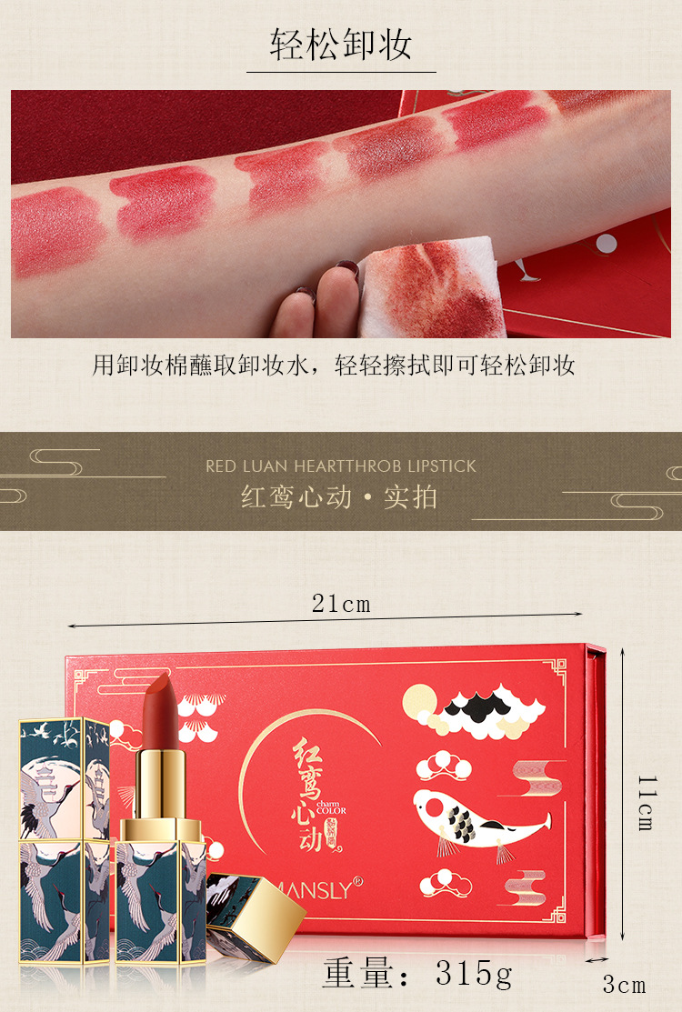 曼诗丽中国风口红套装持保湿防水开运口红哑光故宫国货正品情人节