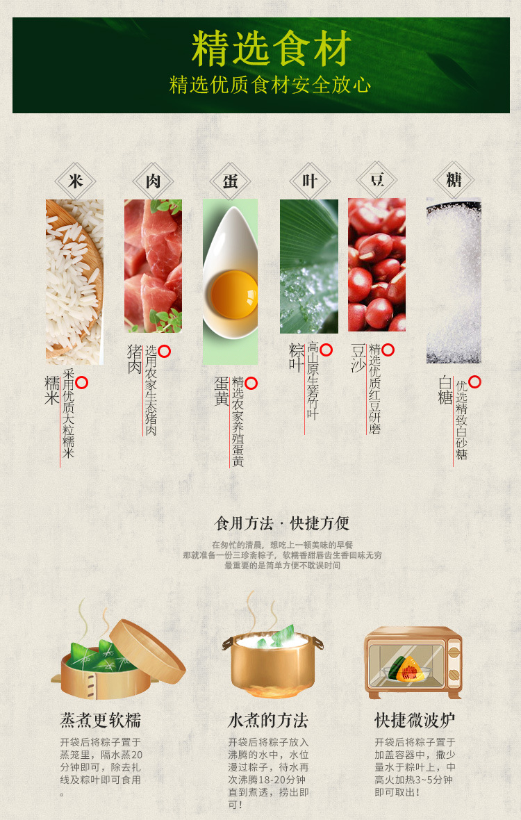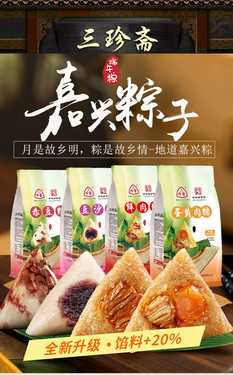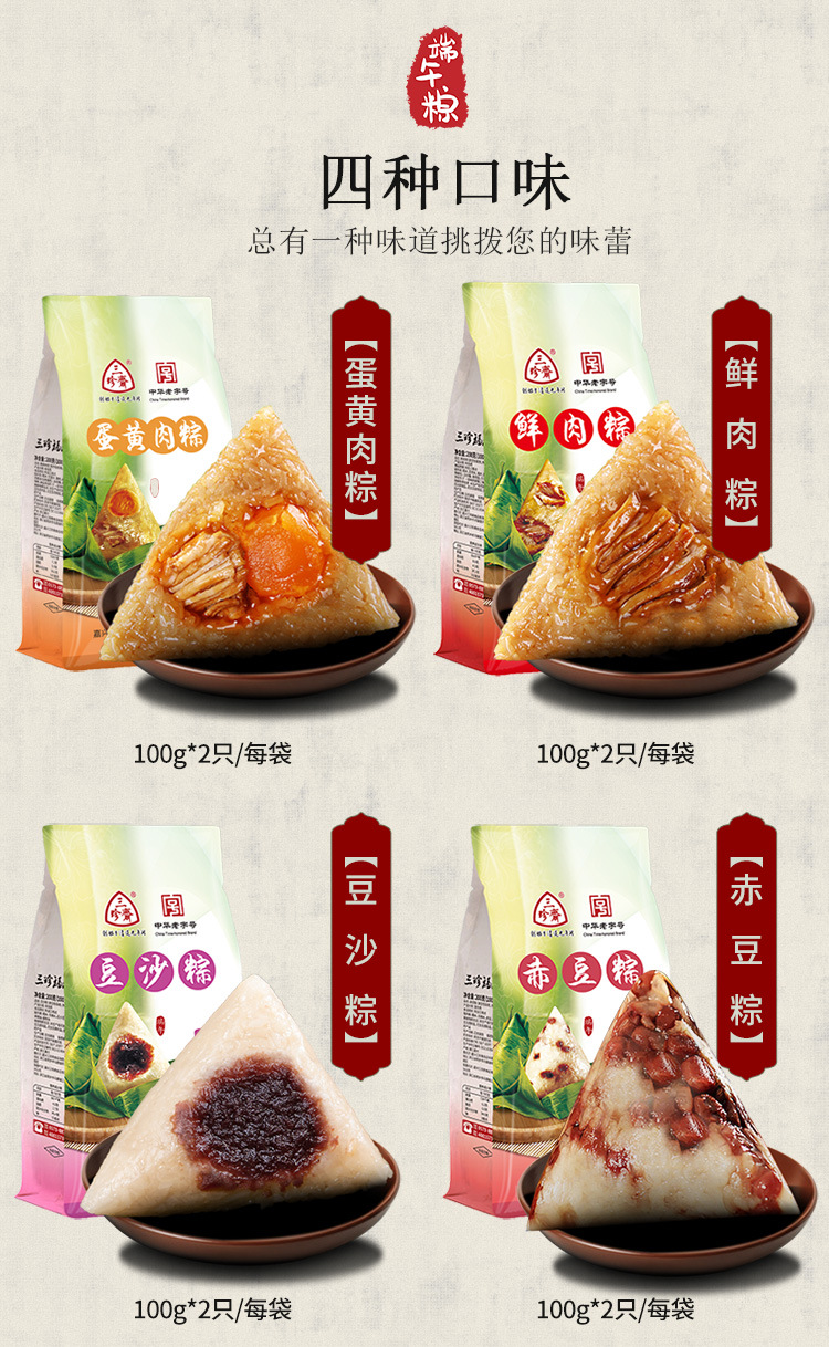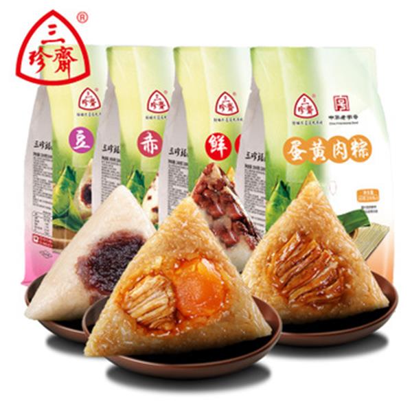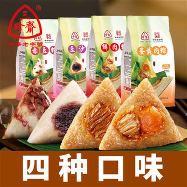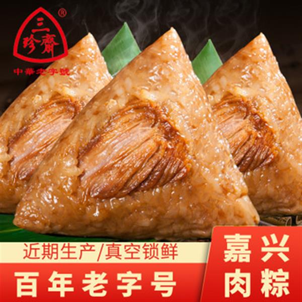 嘉兴粽子三珍斋蛋黄肉粽甜粽100g*2只袋装新鲜手工粽子